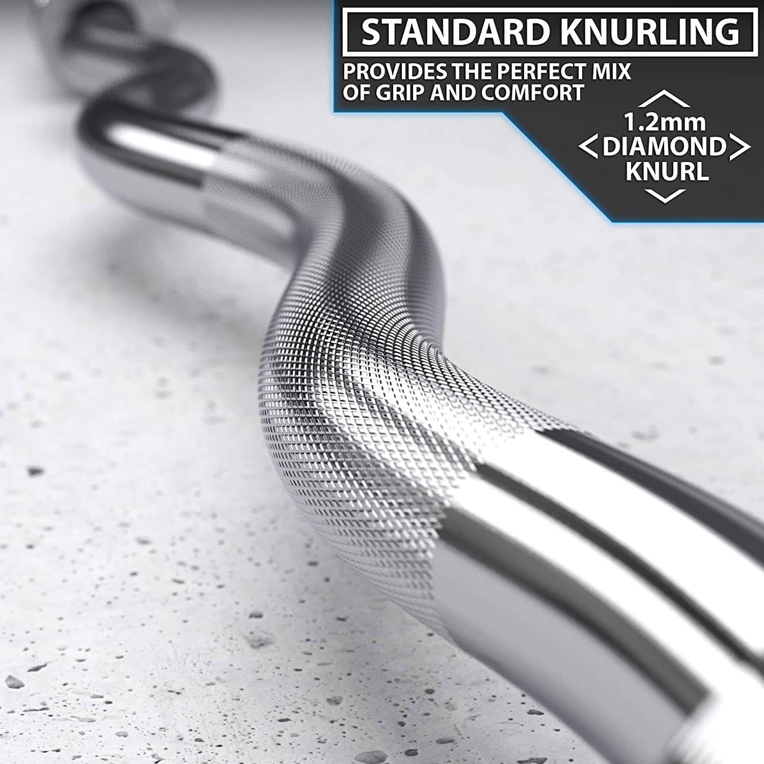 Comfortable Grip - Our curl barbell bar features a knurled grip, providing a secure and comfortable hold during lifts. The grip allows users to maintain control of the bar, reducing the chances of slipping and improving overall lifting performance.