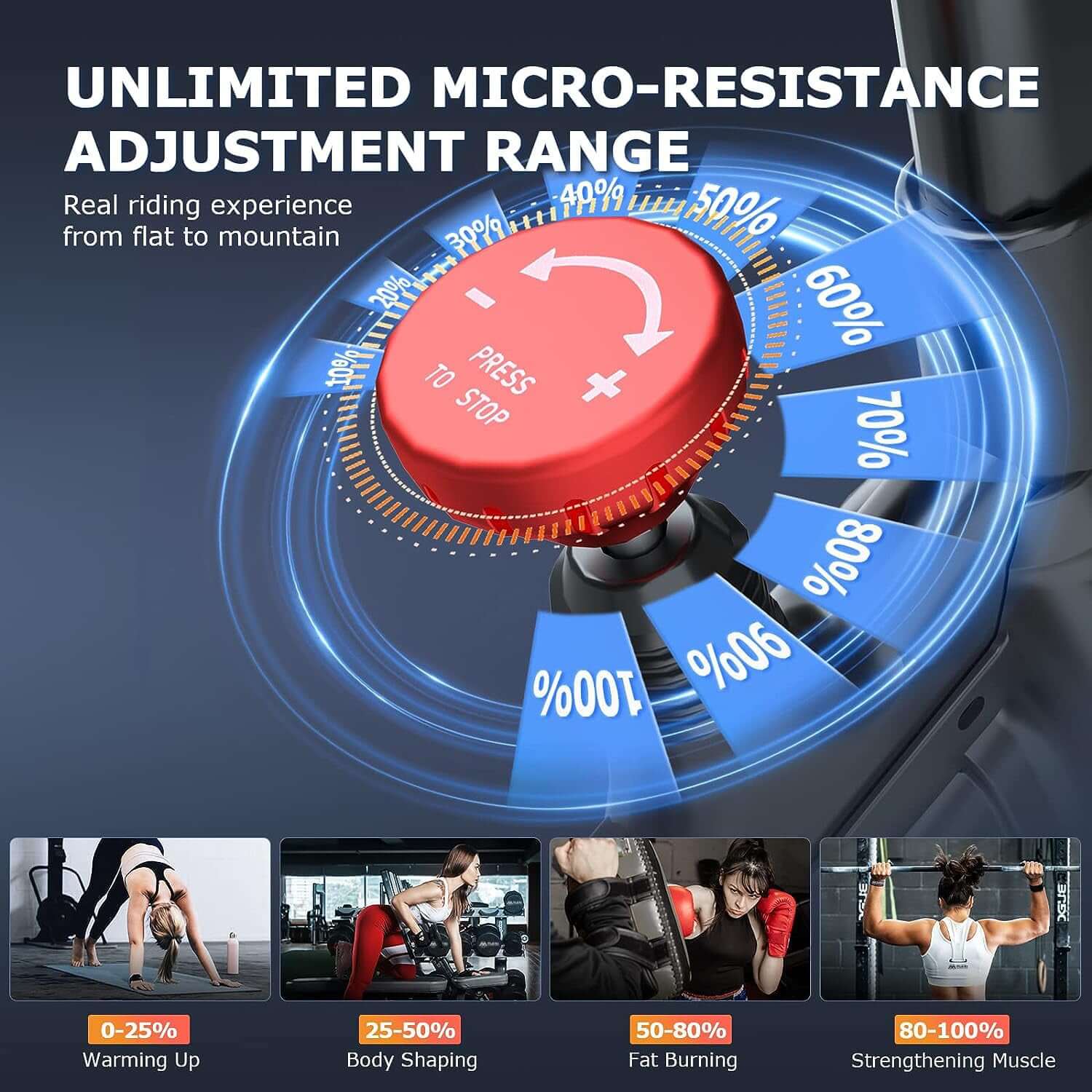 Multiple Resistance Levels - Featuring a dual felt pad resistance system that perfectly simulates the feel of road cycling, along with a micro-tension controller, this excercise bike allows for precise resistance adjustments, catering to your specific fitness level and training goals.