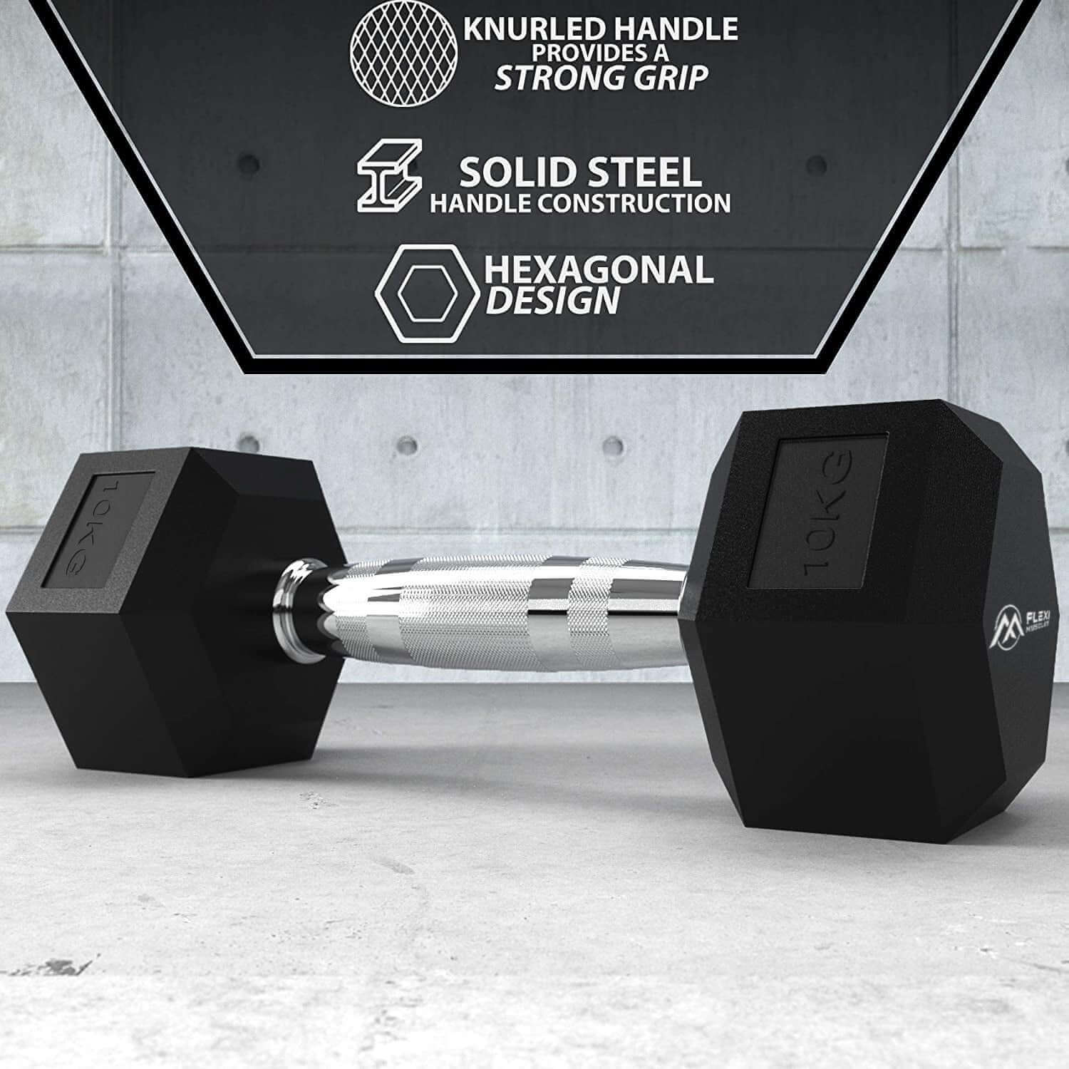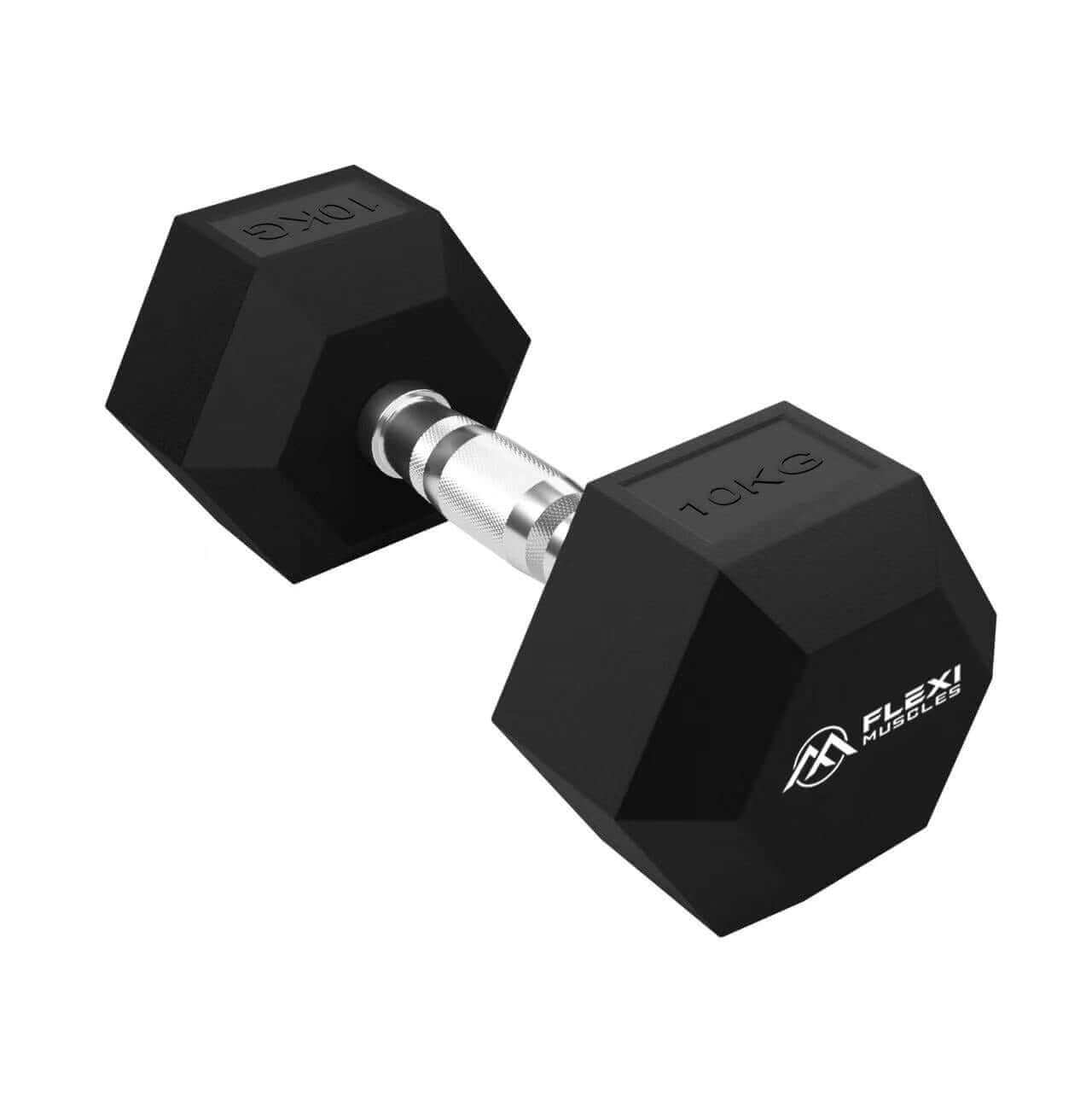 Wide Weight Range - Flexi Muscles hexagon rubber coated dumbbells are available in various weight options, catering to the needs of both beginners and advanced weightlifters, allowing for progressive training and growth.