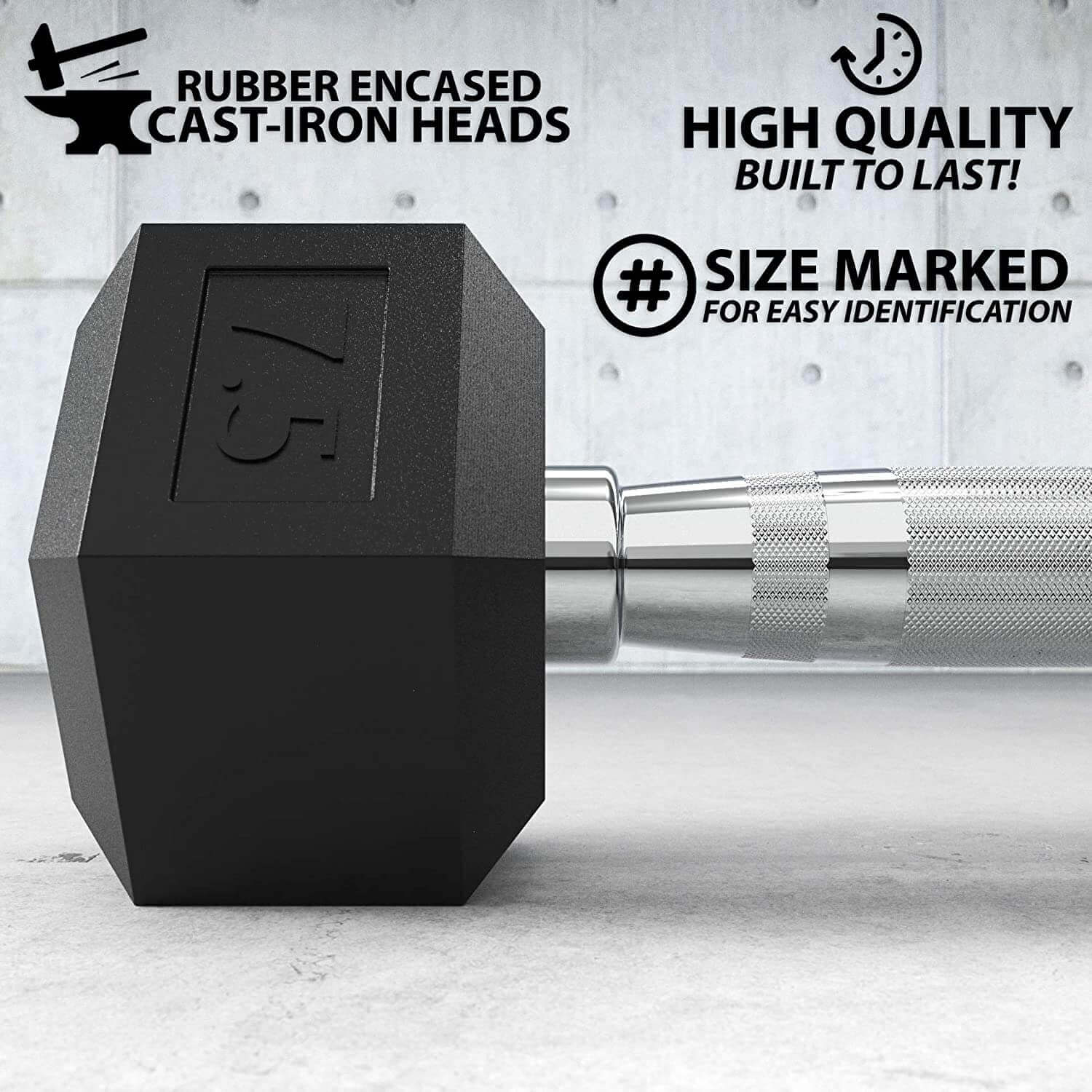 Hexagon Shaped Rubber Encased Dumbbell for Weight Lifting