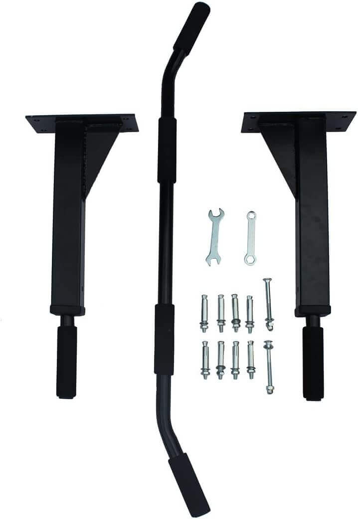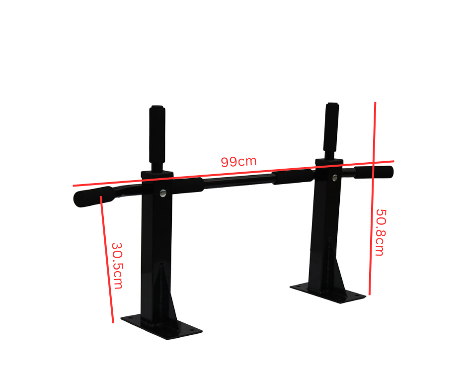 Wall mounted requirements - Concrete wall or brick wall is suggested for mounting this pull up bar and dip station. DON'T install on drywall, plaster walls and cavity.