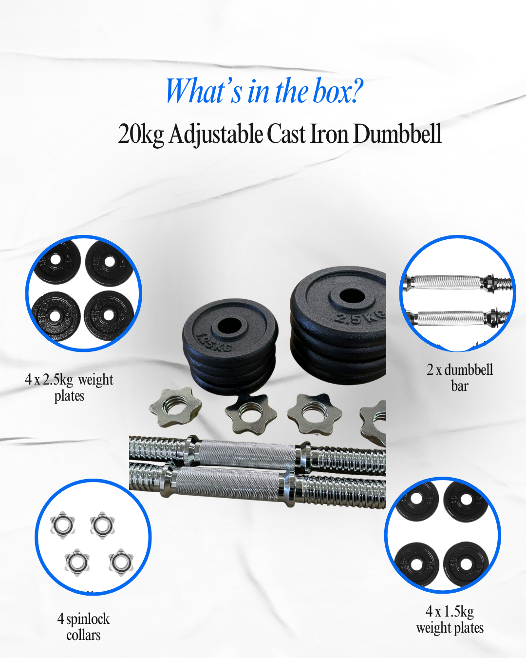 Adjustable Barbell Cast Iron Dumbbells Set for Home & Gym