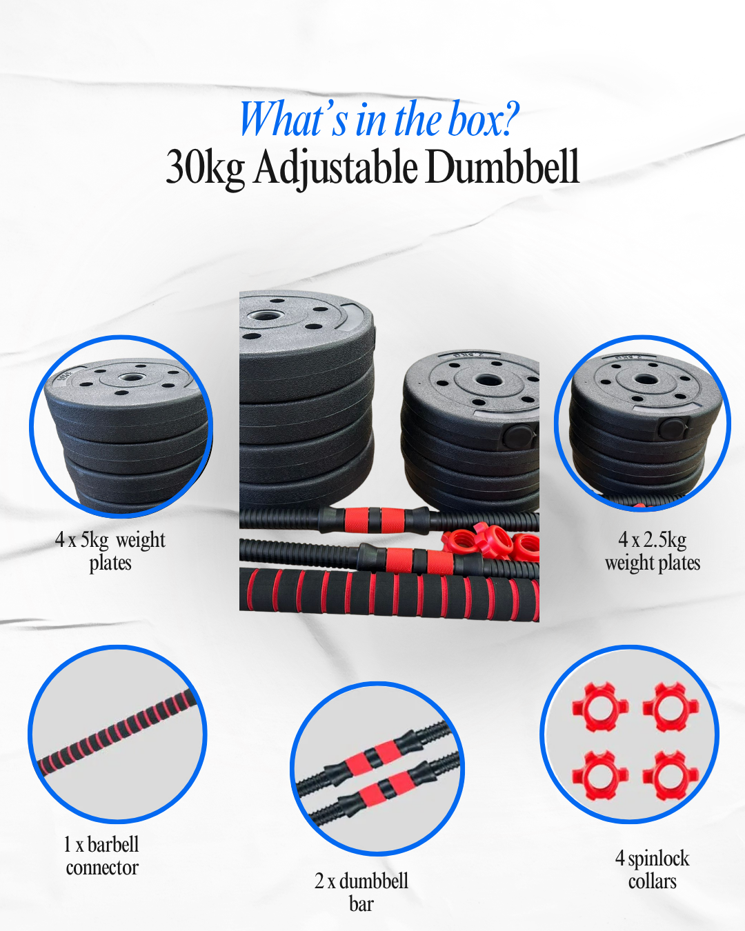 Adjustable Dumbbell and Barbell Weights Set for Gym 30kg.